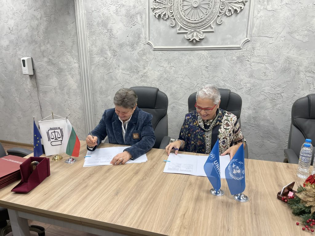 На 4.12.2025 г. директорът на Националния институт на правосъдието, Миглена Тачева и Седа Кузуджу, представител на Върховния комисариат за бежанците на ООН в България (ВКБООН), подписаха меморандум за сътрудничество, насочен към подпомагане на изпълнението на международните, регионалните и националните ангажименти в областта на правата на човека, свързани с осигуряването на ефективен достъп до права на принудително разселени лица и лица без гражданство.