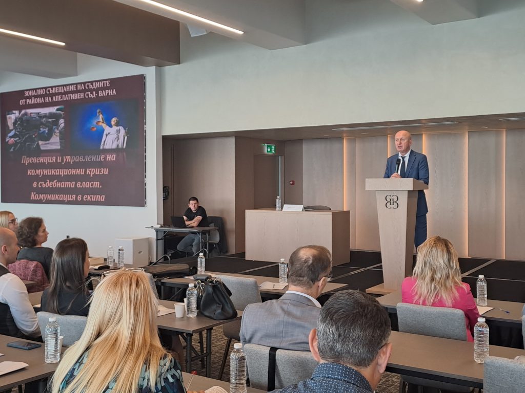 Двудневно зонално съвещание, организирано от Апелативен съд – Варна и Националния институт на правосъдието, събра над 120 съдии, ПР-специалисти и съдебни служители. Те се обучаваха по теми, свързани с отношенията в екипа, предотвратяването и управлението на комуникационни кризи. Участниците бяха представители на районните и окръжните съдилища в Североизточна България, на Апелативния и Административния съд във Варна. Включиха се и ръководствата на апелативните съдилища в София, Пловдив и Бургас.