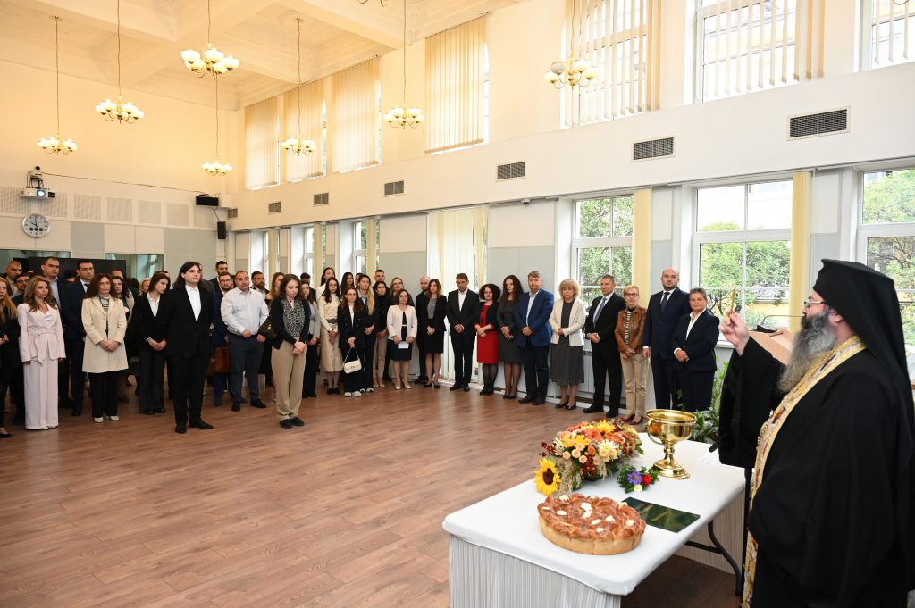 Водосвет за здраве, мъдрост и благословение отслужи Негово Преосвещенство Мелнишкия епископ Герасим, главен секретар на Светия Синод на Българската православна църква – Българска Патриаршия, с участието на квартета на Патриаршеската катедрала „Св. Александър Невски“. Той пожела на обучаемите да преминат своя път с вяра, вдъхновение и светлина, като акцентира върху духовната закрила на Света Богородица и значението на стремежа към съвършенство като дълбоко човешки и обществен стремеж.
